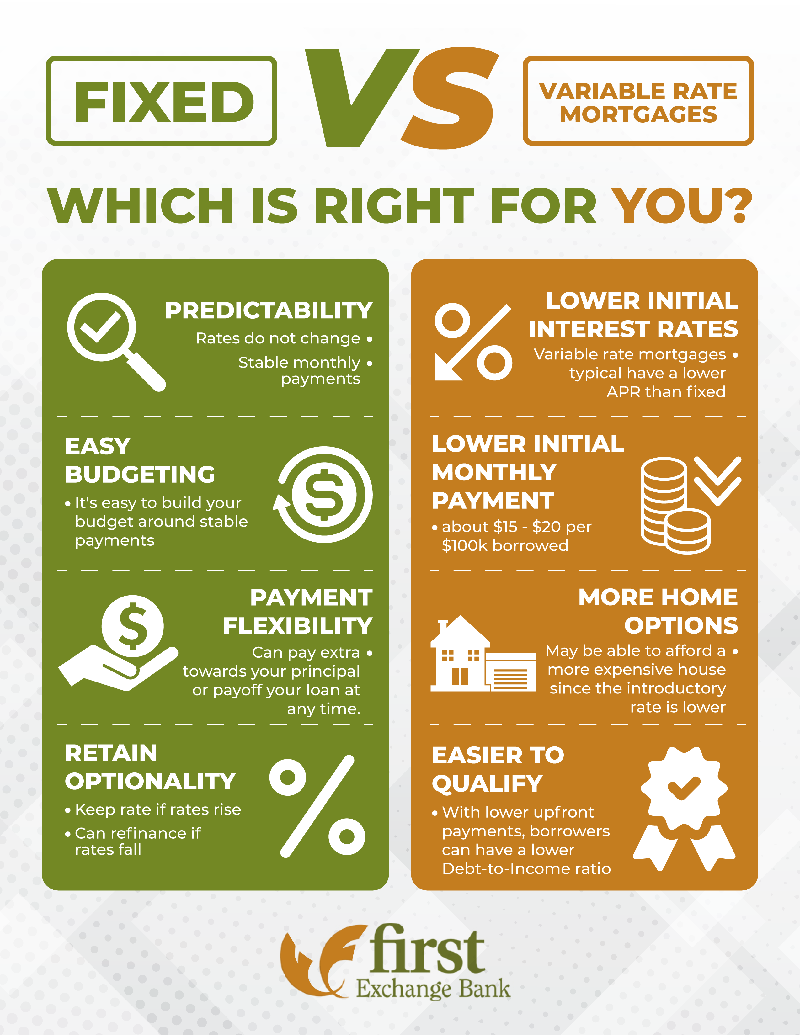 Learn more about variable or fixed-rate mortgage loans from First Exchange Bank!