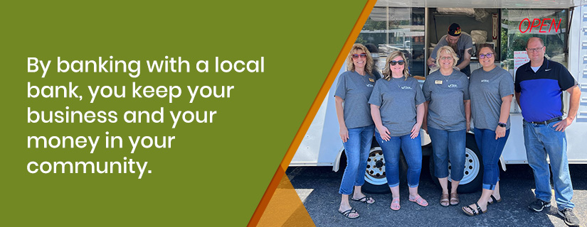 When you bank with a local bank, you keep your business and your money in your community. Why is this so important to the health of our communities? Your dollars invested in your community bank can provide loans to businesses to open, expand, and hire employees, keeping our local economies strong. And not only do local businesses create more jobs, they also help bring regional prosperity and provide great tax revenue to be reinvested back into the community—wins all around.